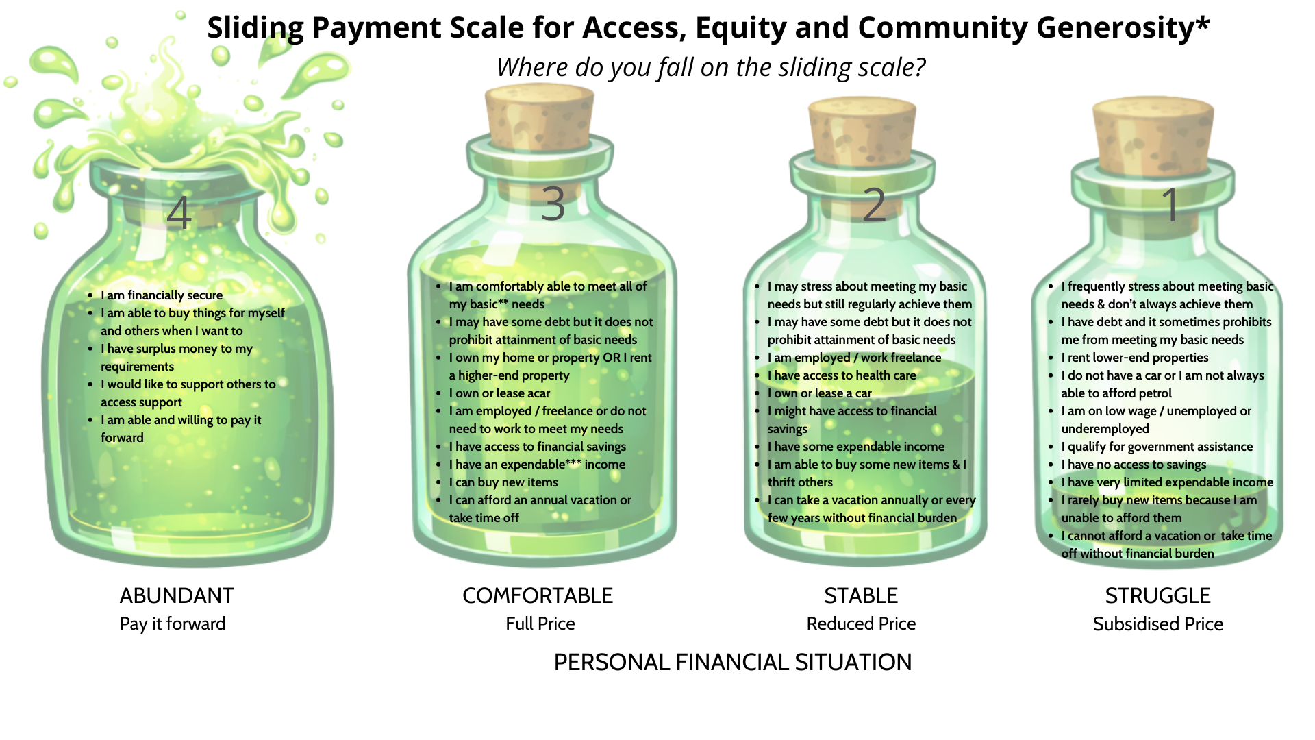 Explanation of Sliding Scale that supports principles of Access, Equity and Community Generosity